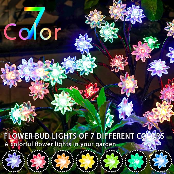 • 【ASSEMBLE & LIT UP】Assemble the flowers buds, then push the switch to " ON" position, enjoy the most unique solar decoration light in your front yard