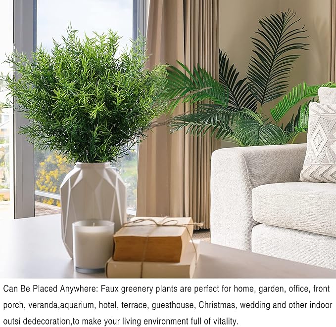 • Can Be Placed Anywhere: Faux greenery plants are perfect for home, garden, office, aquarium, hotel, terrace, guesthouse, Christmas, birthdays, holidays,wedding and other indoor outside decoration.