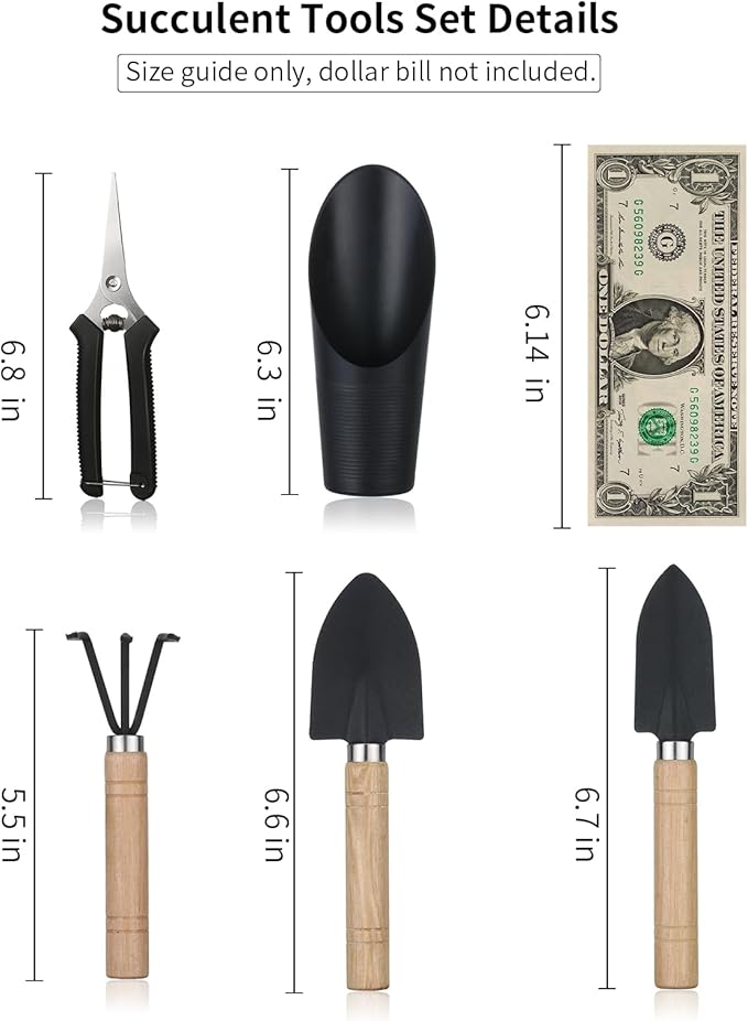 • [SATISFACTION GUARANTEE] Succulent tools set is good helper for your small and delicate projects gardening.Our customer rule number 1 :customer is always right!We are committed to providing all customers with high-quality products and the best service, Should you have any questions about the mini garden tools set or after-sale service, please do not hesitate to contact us. We are here for support and advice!