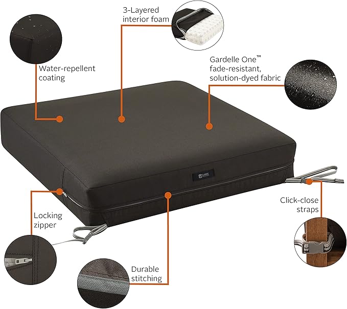 • WATER-REPELLENT COATING AND BACKING: Water-repellent coating resists stains and helps keep rain out and your cushion foam protected