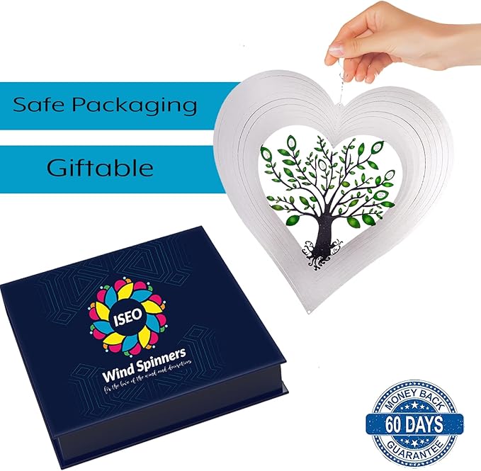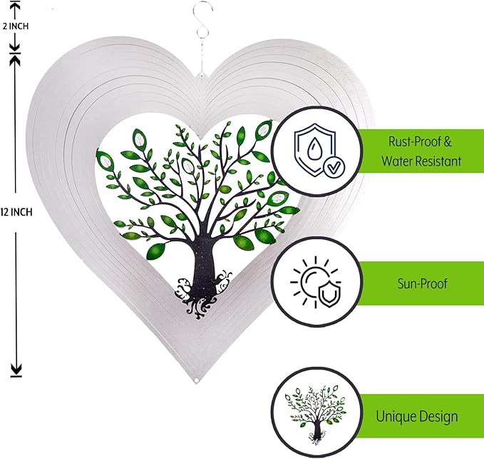 • UNIQUE DESIGN - Our Hearted Tree of life wind spinner has an elegant, stylish, and unique design to make your garden stand out. They create an incredible 3D illusion when the wind blows against them to create a magical sight that will keep you glued outdoors in your garden or porch.