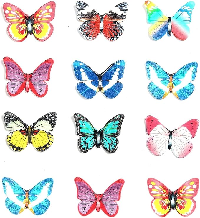 48Pcs Edible Cake Butterfly Decoration Cake Toppers Birthday Party Cupcake Toppers Mixed Size & Colour