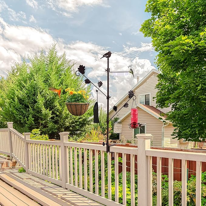 Urban Deco Deck Pole Porch Multi-Hook Bird Feeder Hooks for Deck Kit with Feeder Polyester and with 2 Adjustable Branches and Plastic Water Bowl