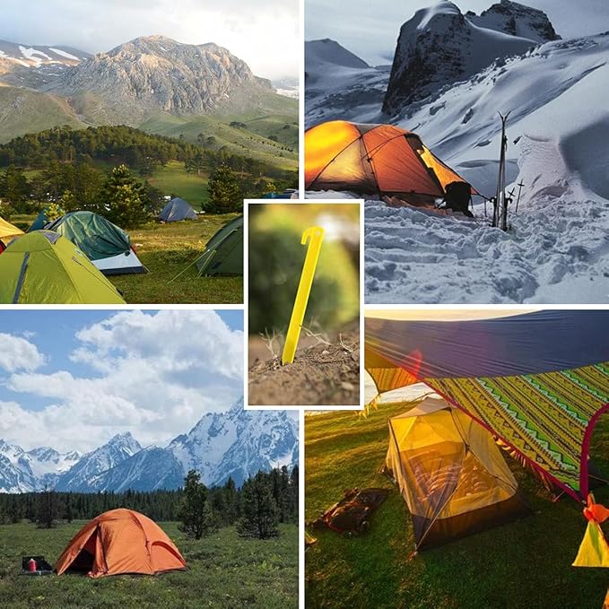 • HEAVY-DUTY CONSTRUCTION: Unlike other plastic tent stakes made from brittle plastic that breaks or gets damaged easily, our pegs are made from durable ABS plastic for better durability. They are suitable for sand, beach, or the woods, and are reusable too saving you money in the long run.