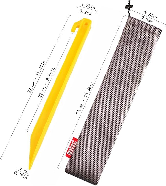 • MULTIPURPOSE: Our plastic tent spikes are made to be the perfect solution for holding things down outdoors. The pegs are perfect for anchoring your camping tent, garden netting, rain tarp, gazebos, lawn edging, canopy, dog fence, and more. They are 12 inches long to hold items deeper and stronger.