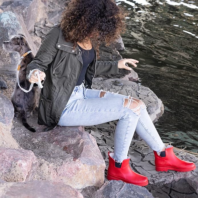 • RUNS A HALF-SIZE LARGER: With extra room for thick socks, these ankle rain boots keep feet warm on colder than cold days. Size Info: US Size: 6, 7, 8, 9, 10, 11 - EUR Size: 37, 38, 39, 40, 41, 42 - Foot Length: 9.25", 9.50", 9.75", 10.00", 10.50", 10.75" Shaft circumference is 12" with boot height of 6" for all sizes