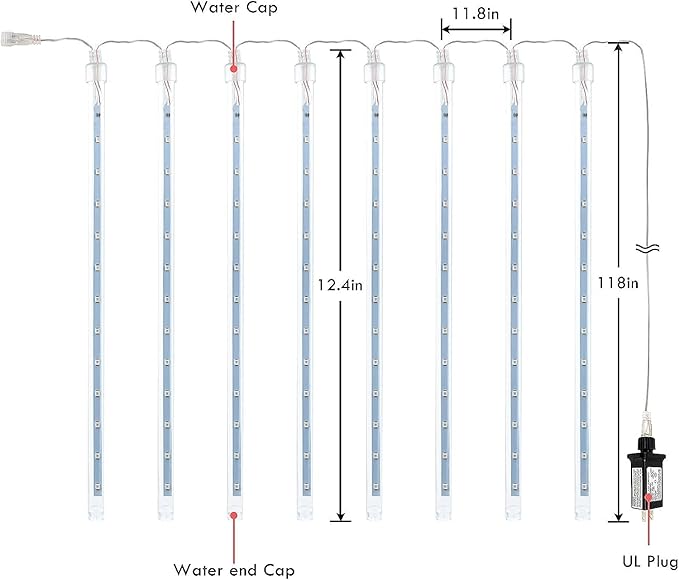 • 2-Pack 16 Tubes 384 LEDs Extendable Plug in Meteor Shower Lights for Christmas Decor: Super Bright with new upgraded LED bulbs, each bulb turn on and off one by one, like a realistic meteor shower. It is time to add a festive looking to your family!