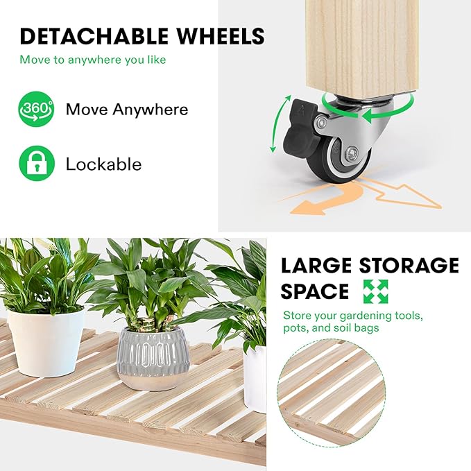 • Mobile Wheels: The 4 bottom wheels (two of which come with brakes) make it easier to move the garden bed from place to place