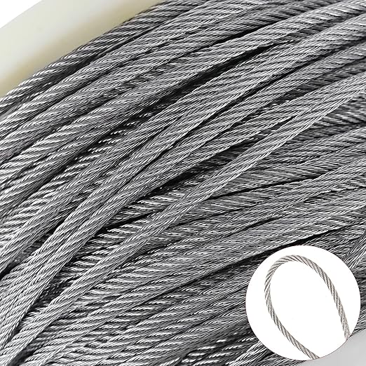• 【HIGH BREAKING STRENGTH】 The diameter of the 316 stainless steel wire cable is 1/8 inch. The 7x7 strand wires are tightly wound for greater load-bearing capacity. It has superior strength and better flexibility, with a maximum breaking strength of 660 lbs/300kg.