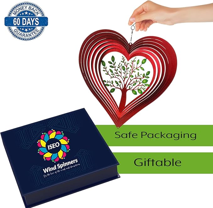 • UNIQUE DESIGN - Our Hearted Tree of life wind spinner has an elegant, stylish, and unique design to make your garden stand out. They create an incredible 3D illusion when the wind blows against them to create a magical sight that will keep you glued outdoors in your garden or porch.