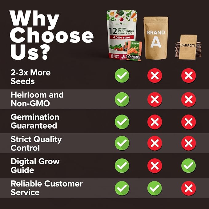 • WORRY FREE GARDENING: Our seeds are consistently tested at or above 95% germination rates under optimal growing conditions. Our vegetable seeds variety pack includes a Growing Guide that can help you on your gardening journey.