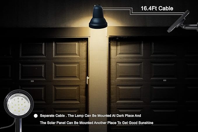 • Flexiable Install Place Options . SEPARATE SOLAR PANEL with 16.4Ft Extension Cable to Let You PLACE The Spot Light at Favorite Place Even Where NO SUNSHINE. Two-Ways Mounting : Stake-to-Ground OR Wall-Mount With Mechanical Fasteners to Create Soft Downlight / Uplight Ascend