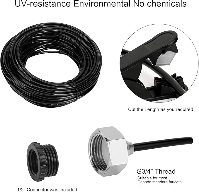 • 【DIY Design】All accessories will be provided for you to DIY this mist cooling system. Simplify the insertion and removal of the small fitiings and drippers .You can customize the length you like .It was very simple to install it , no need special skills. Then it will deliver very great mist to cool the air in the hottest summer day.It will cost you five minutes or less to DIY this misting system.
