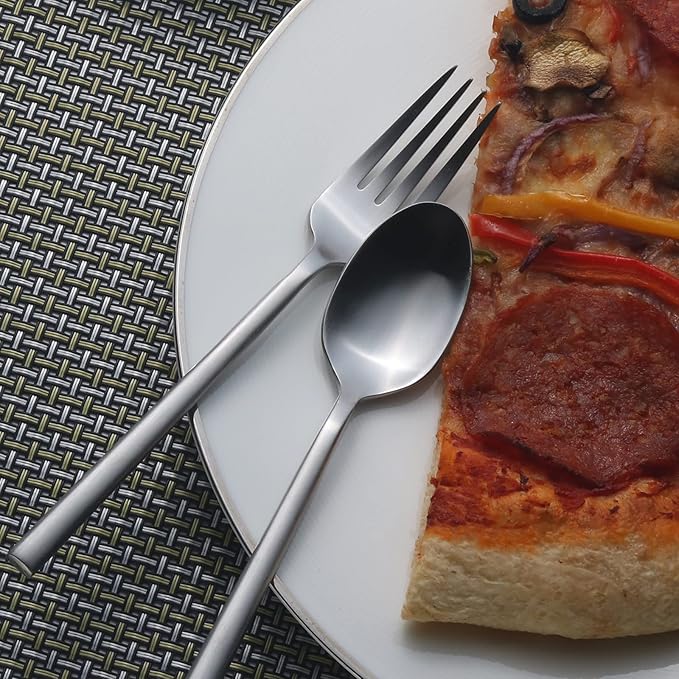 • Modern & Stylish Design: Embrace modern elegance with our silverware set. Its classic round handle shape with satin finish provides a natural and elegant design, and the smooth, silk surface without grain makes it easy to clean. It's a perfect match for those seeking a modern silverware set, a rustic silverware set, or even a unique flatware set