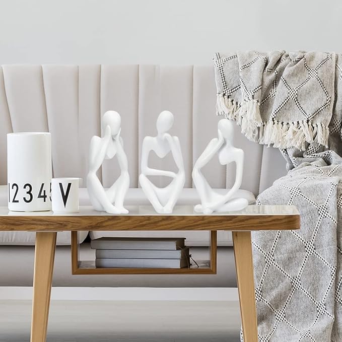INNOLITES Resin Statue Thinker Style Decoration Abstract Sculptures Collectible Figurines for Home Decor Modern Office Shelf Desktop(White Focus)