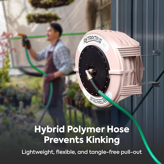 • Prevents Kinking: Our garden hose reels for outside include the Retracts Flex green feeder hose (1/2″x 6.5’) made with hybrid polymer material, this water hose is lightweight and easy to pull out of the hose reel.