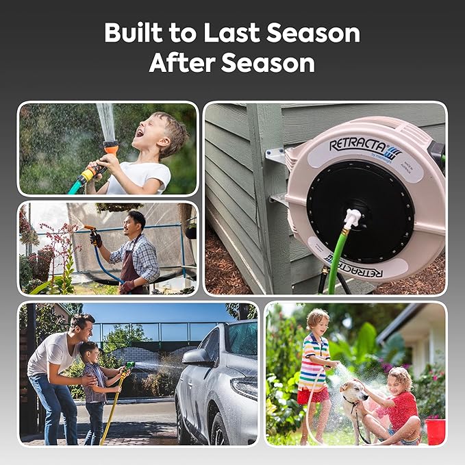 • Removable Reel for Winter Storage: This retractable outdoor hose features a quick release system for easy removal. Store this self-winding garden hose reel when not in use. Our heavy duty retractable water hose reel is designed to last season after season.