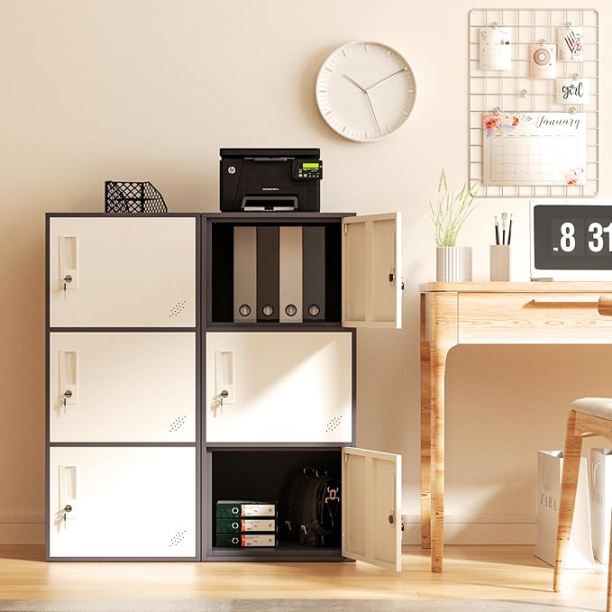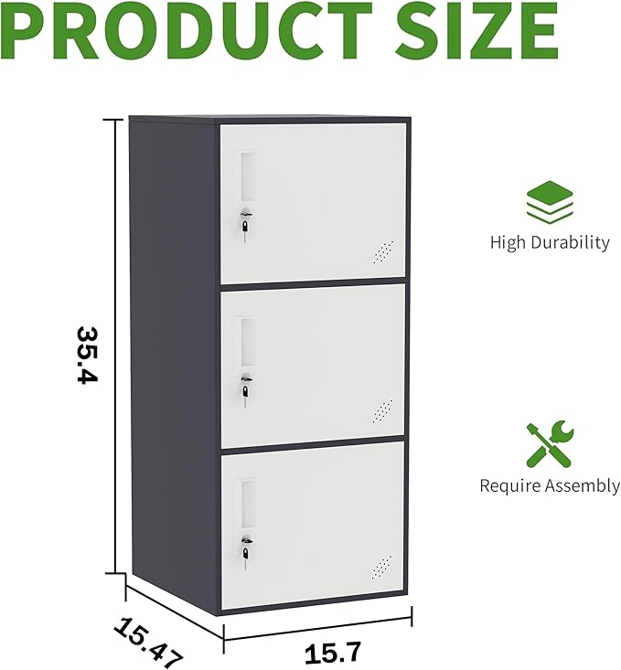 3 Door Vertical Stackable Storage Cabinet with Lock,Anti-Failing Device, Metal Lcoker,Organizer for Office, Home, Gym, School,Employee,Kids. (Grey)