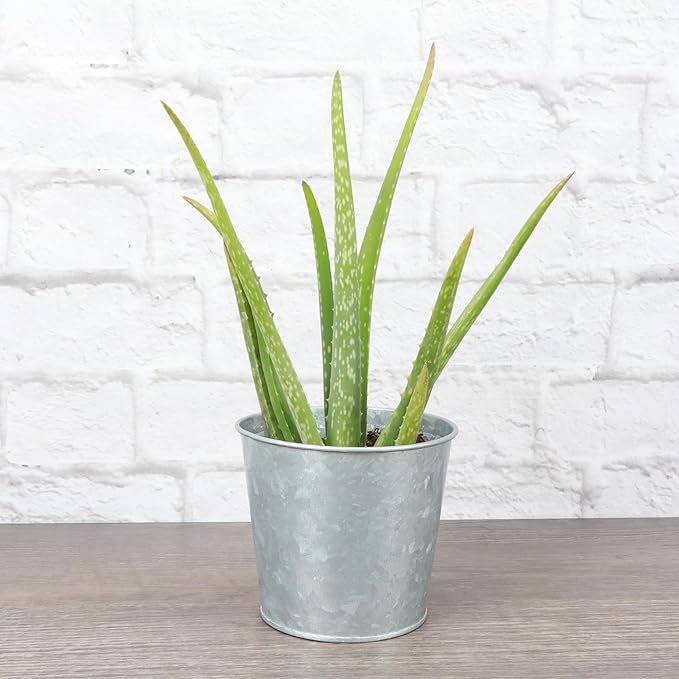Thorsen's Greenhouse Aloe Vera, Live Indoor Plant, Aloe barbadensis, Easy to Grow, Succulent, Natural Air Purifier, 4" Diameter Pot (Silver - Metal)