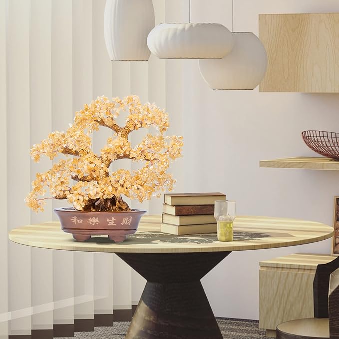 • 🔮 HIGH ENERGY CRYSTALS: Citrine is a “Success Stone” promoting Success, Prosperity, and Abundance, a wealth attracting stone in feng shui. Our Gemstone Tree is handmade with exactly 1,251 positive energy, hand-selected, gem grade crystals! The leaves are made of Citrine Crystal, It will help you attract wealth and prosperity, success, and all good things. Our Crystal Bonsai Tree is soothing to the eye, offers environmental blessings to any room in your home, office and spiritual work space.