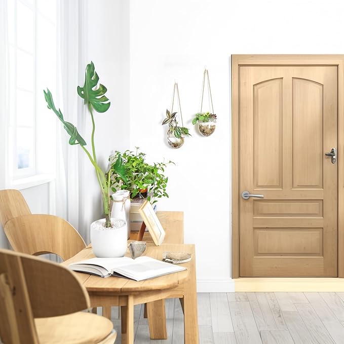 • Elegant & Modern Design: These stylish glass hanging planters add a touch of sophistication to any space, suit for home, office, or garden decor. Cute round plant terrariums, flat on the beside so it will sit flat on a flat wall surface. Hanging design create a beautiful display for air plants, succulents, or hydroponic plants and you don't have to worry about your pet breaking it