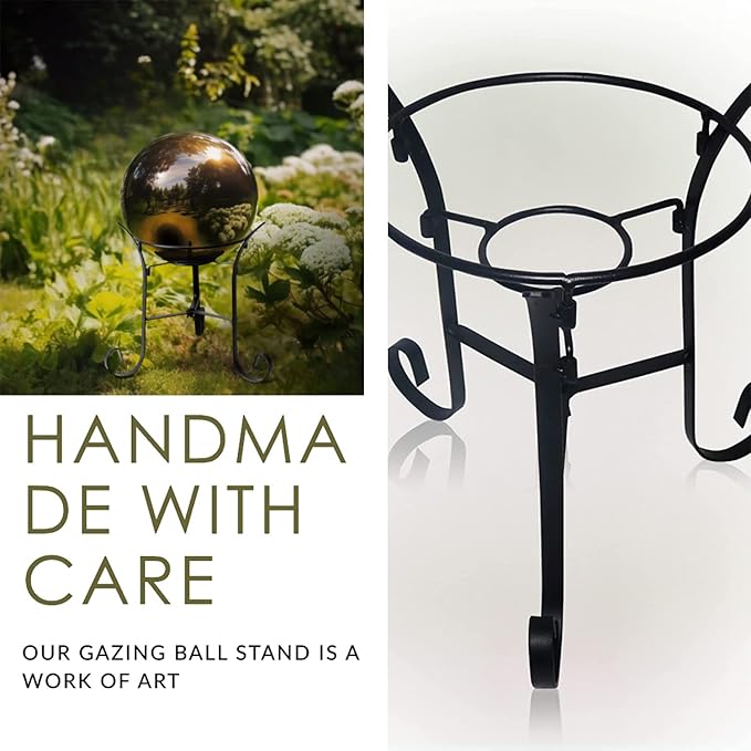 • STUNNING SPHERE STAND - Black finish will match any gazing globe no matter what the color! It‘s a striking ornament in the garden, can be placed on a patio, deck, front porch, lawn, It brings a romantic to your garden year after year. It approved for outdoor with no worry about weather condition.