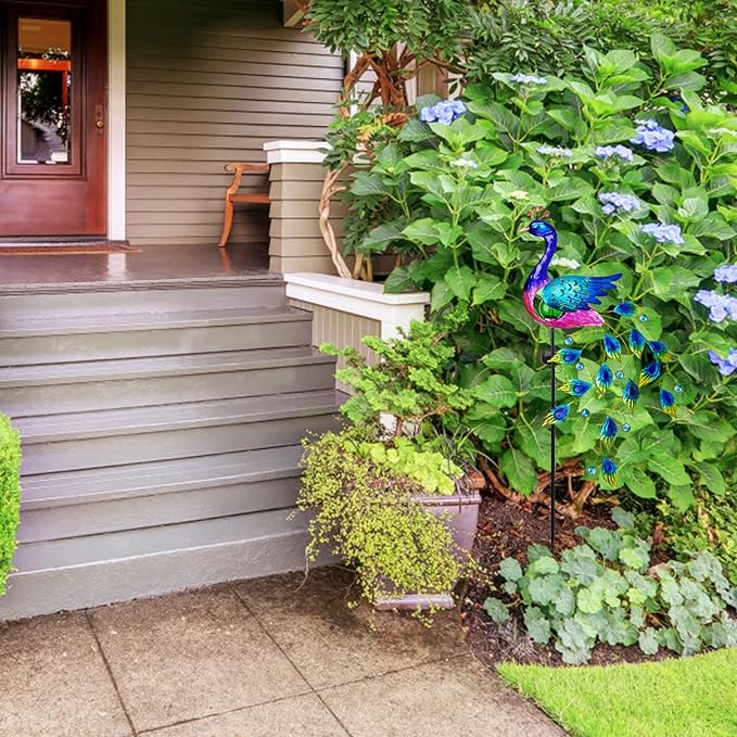 • Beautiful Peacock Garden Decor: Elegant peacock solar stake lights made your garden more lively and Vividly. This lawn ornament features with green crackle glass ball that brings a sense of magic. Whether day or night, it's a great decoration to porch, court, yard, garden, walkway, pathway, driveway, grave, lawn or pool