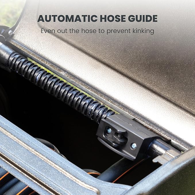• EASY WINDING: Make garden watering simple and easy! The easily assembled crank handle and the hose guide help you manually wind the hose evenly around the reel with less mess.