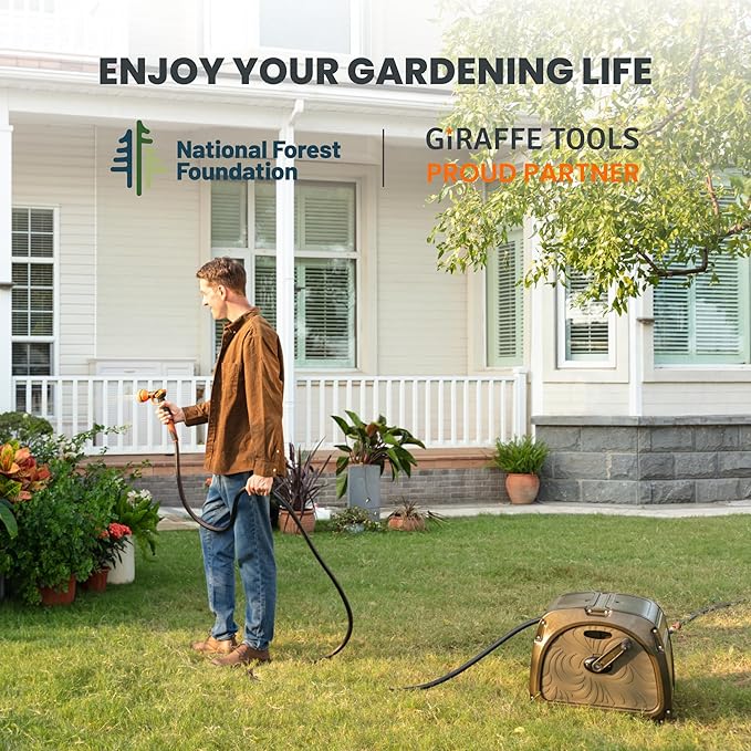 • STABILIZING FOOTREST: The Giraffe Tools hose reel is equipped with a stabilizing footrest to ensure that the hose and reel kit remain securely in place during winding and unwinding.