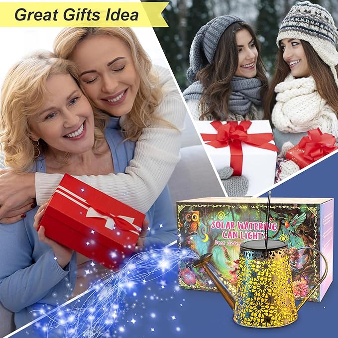 • Suitable for Indoor and Outdoor Use: VOOKRY's solar watering can provides 2 modes of use. You can use the included shepherd's hook to hang it in an outdoor garden and let it water your flowers with flowing stars. You can also put outdoor solar lights directly on its own, which is a good decoration for indoor tables, steps, flower POTS or balconies. (Note: Please put the power switch in the "on" position when charging during the day, and place the solar panel in a well-lit place).