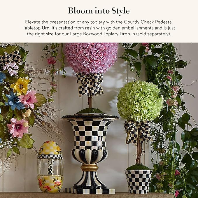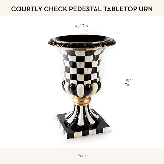 • DECORATIVE PEDESTAL VASE: Create the perfect centerpiece or elegant accent with this pedestal planter. It features our signature Courtly Check pattern with hand-painted black-and-white checks and golden embellishments.