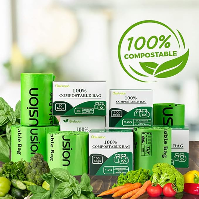 • 【COMPOST BIN KITCHEN&CONTROLS UNDESIRED ODORS 】We had updated the strong compost bags.small with a unique high density blend to prevent tears and to provide exceptional durability for even the heavier of waste loads.The green bags are sturdy,tear resistant,have leak-proof seals. The feature of GreFusion small compost bags fights nasty odors to keep your kitchen bin smelling fresh. It is convenient to cover your family several rooms for easy access and enough amount to last for a great while