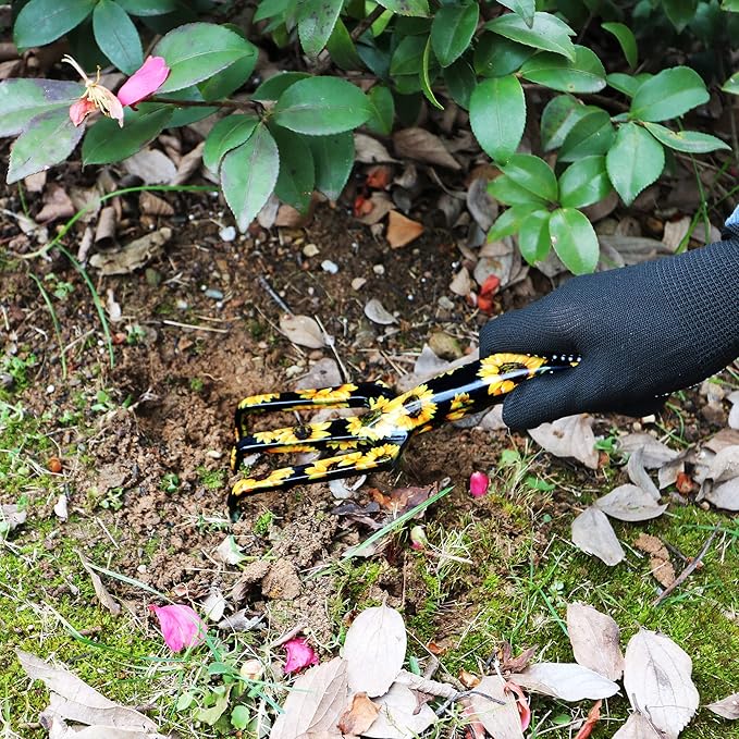 • Robust Heavy-Duty Construction: The garden tool set features a heavy-duty design, with each tool, including the trowel, pruning shear, and 3-claw rake, crafted from durable aluminum. This robust construction ensures that the tools can withstand tough gardening tasks and challenging conditions.