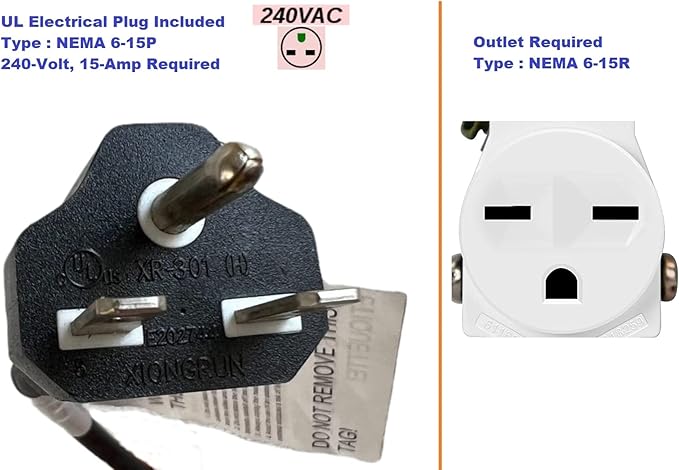 • SAFETY - The heater is equipped with self-recoverable overheating protection. Timely and safely shut off the heater. UL Electrical Plug Type: NEMA6-15P UL AC Plug 15A