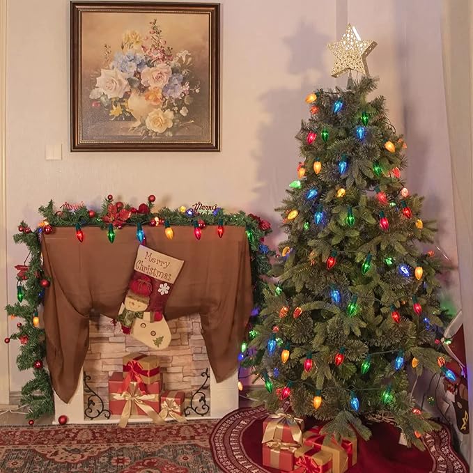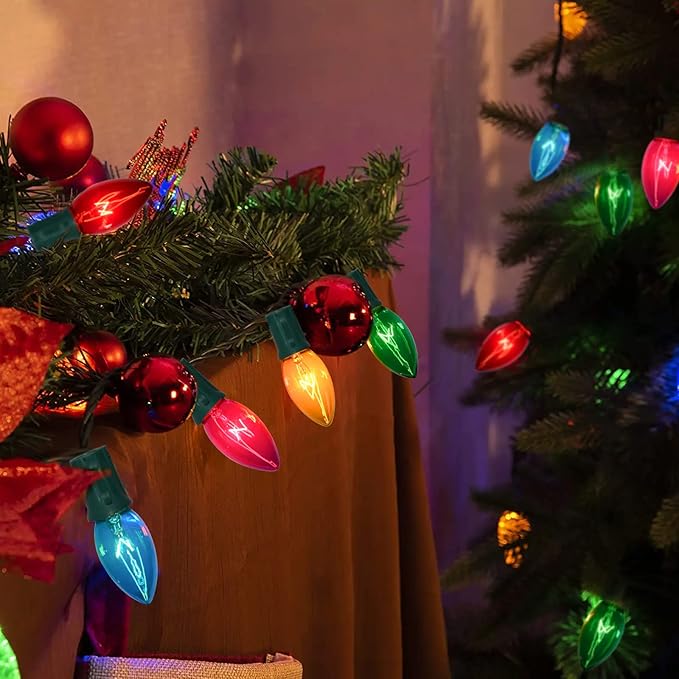 • C9 Multicolor Christmas Lights Outdoor: C9 christmas lights come with a vibrant assortment of red, green, pink, blue, and yellow bulbs, instantly transforming your space into a festive wonderland. The vivid colors emit a warm, inviting glow, creating an enchanting atmosphere for your holiday festivities.