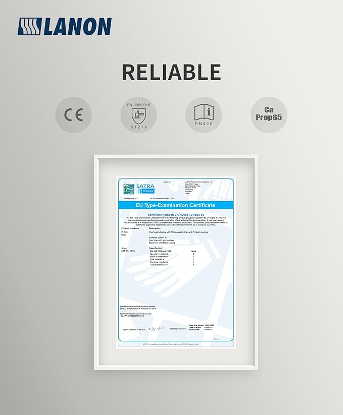 • Next-level Performance - LANON men's work gloves are certificated by CE, with Standards EN 388:2016, EN 420, and meet CA Prop.65 regulations for phthalates. We guarantee your 100% satisfaction with our products. If you are not satisfied with our products, we offer a 100% refund.