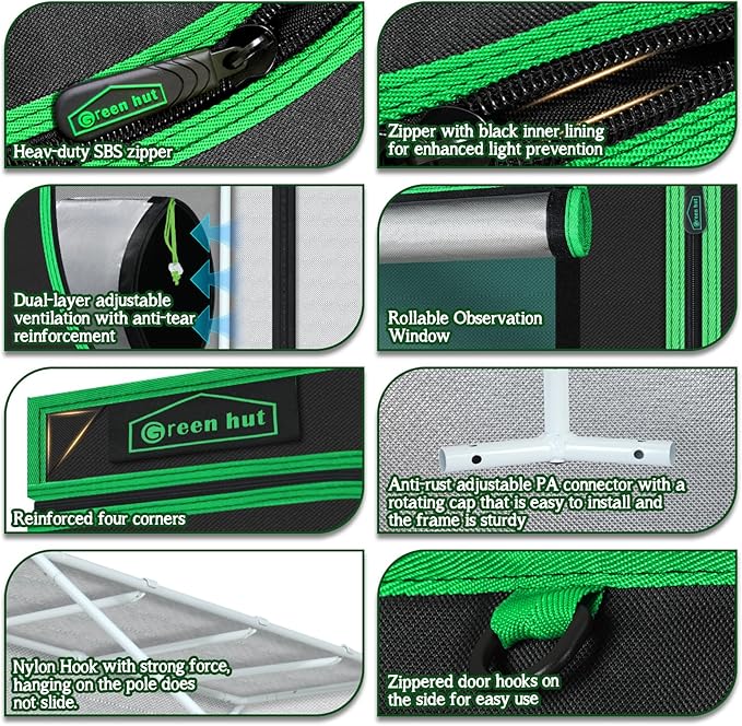 • LIGHT PROOF --- The large heavy duty Zippers & 1.5" ribbon protect the tent from light leaking and ensure durability and long-lasting use. Let you control the climate and lighting so you can grow any plant in any place safely and easily