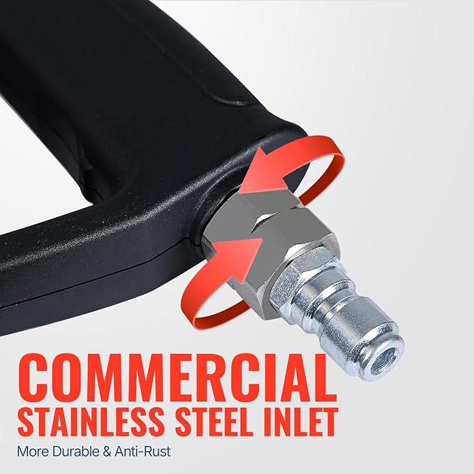 • [Quality Craftsmanship] The pressure washer gun comes with STAINLESS STEEL inlet & 3/8" plug and lock tite, ensuring durability, leak resistance and more durable. 1/4" brass quick connector including teflon tape to prevent leak, easy disconnect. The internal trigger is also crafted with superior quality stainless steel, steel pole connector, and ceramic trigger for low vibration and long working life.