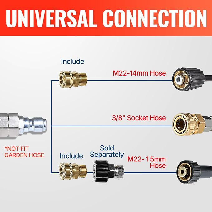 • [360-Degree Swivel Design] Enjoy the benefits of a swivel inlet rotates 360 degrees, preventing power washer hose tangles all the time. This feature makes pressure washing more efficient, allowing you to clean from top to bottom without wrestling with the pressure washer hose. PLEASE NOTE: Not fit garden hose, water hose.