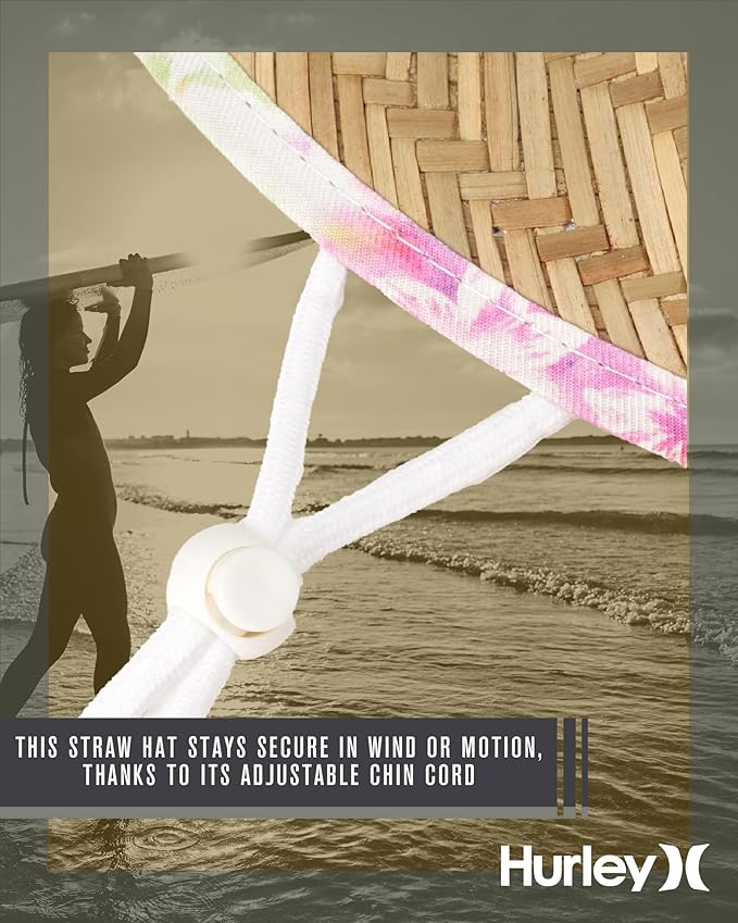 • DESIGN THAT INSPIRES CONFIDENCE: The Hurley Women's Straw Hat combines the perfect balance of beach-chic and sun protection. Its medium brim delivers a flattering silhouette while shielding your face from harmful UV rays. Whether you’re lounging at the shore or strolling through a sun-soaked park, this hat will keep you looking effortlessly stylish. Crafted from real straw, it adds that natural, laid-back vibe that sun hats for women should offer