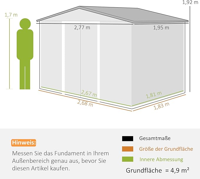 • Spacious Storage Shed: Our outdoor metal shed features plenty of inner storage space so that you can store garden tools, lawn care equipment, and pool supplies. Lockable double doors to secure items (lock is excluded).