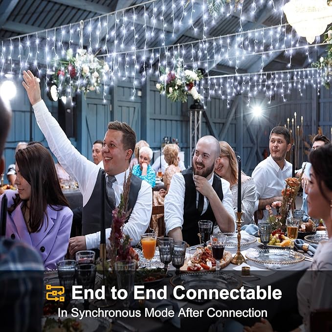 • 【Connectable & Waterproof】 Each icicle Christmas lights comes with end-to-end connector, maximum of 3 strings can be connected.This icicle lights outdoor is waterproof for outdoor use, so don't worry about it getting wet in rain or snow.Just protect the plug from the water.This icicle fairy lights is your best choice for Outdoor Indoor Christmas decorations.
