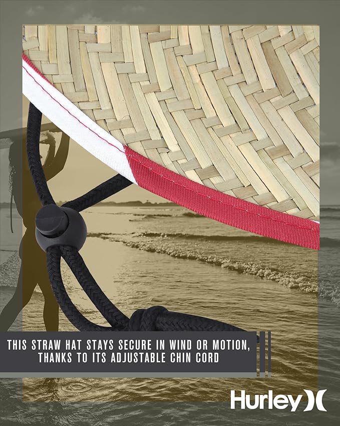 • SUN PROTECTION : Designed with a wide brim, this Hurley straw hat offers you ultimate sun protection. Keep your face, neck, and shoulders shaded from harmful UV rays during long days at the beach, on the boat, or by the pool. Whether you're wearing it for lifeguarding, fishing, or just soaking up some sun, this is the beach hat for men that ensures you stay cool, comfortable, and protected.