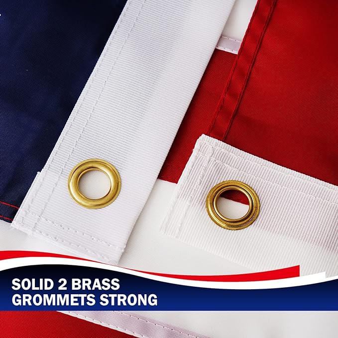 • ★Perfect Embroidered Stars - Using professional and precise craftsmanship, we carefully embroider the stars and stitch them on the flag through independent stitching double stitches. In order to improve the durability of the flag, we used four rows of lock stitches on the hem. By doing this, we have improved the anti-wear ability of the flag and ensure that the flag will serve you for a long time.