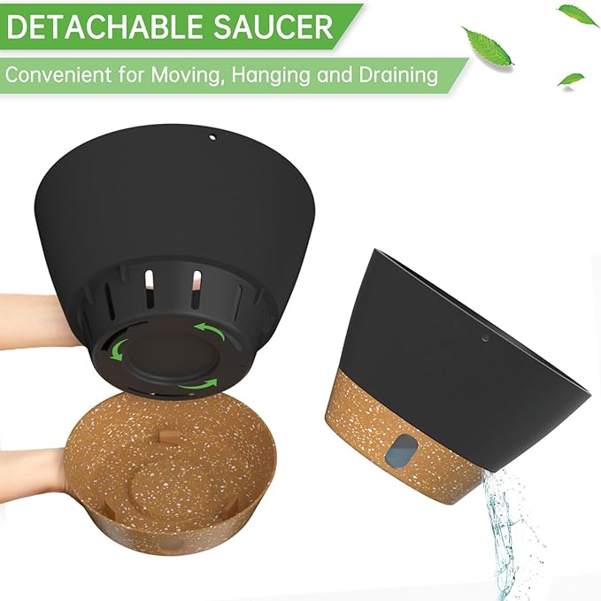 • Snap-in Tray with Visible Water Level: The tray can be removed for easy cleaning of the flower pot. The self-watering flower pot with drainage holes can drain excess water to the tray, so the tray will store an amount of water for the plant(Longer than 7 days). And you can water the plants by looking at the water level.