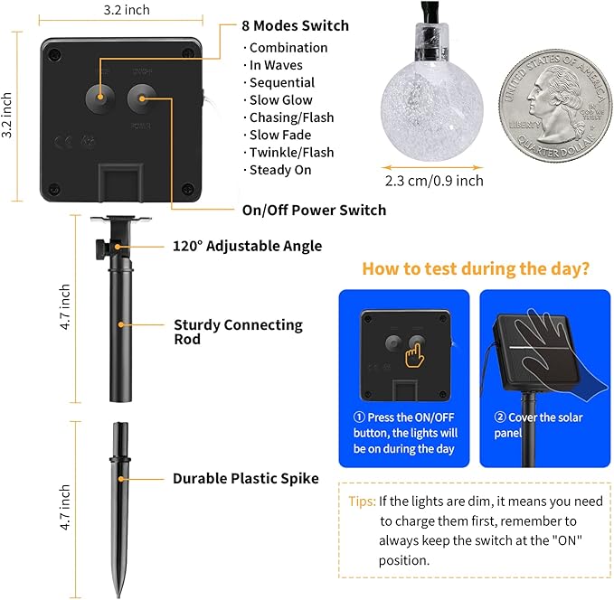 • 【Wide Application & Memory Function】The solar globe string lights with built-in memory chip save your last modes setting and no need to reset mode every day; Perfect decoration for terrace, pergola, bistro, backyard, deck, patio, garden, Christmas, holiday, wedding, party and other celebration occasions.