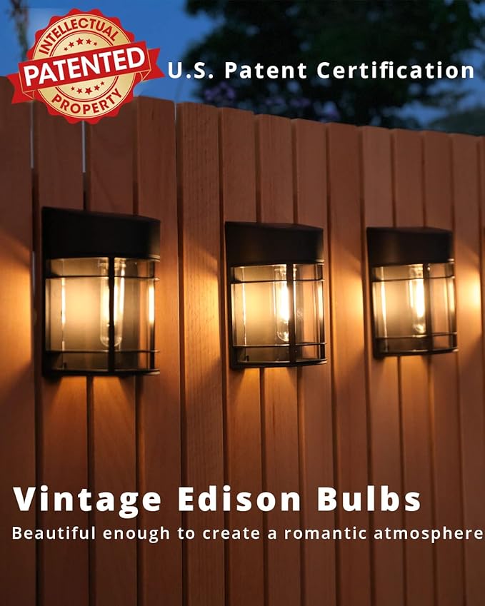 • Solar Lights Outdoor- Solar fence lights aren’t just give off beautiful Warm lighting for illuminating the area surrounding your fence, they can also help to spruce up the overall aesthetics of your home yard. Design with U.S. Patent Certification