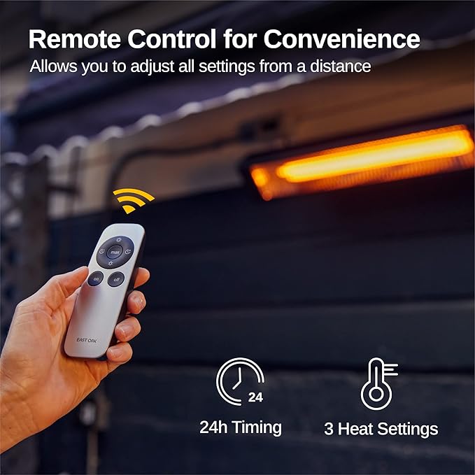 EAST OAK Patio Heater for Commercial Use, 3000W Wall Mounted Electric Infrared Heater, Outdoor Heaters for Patio, Outdoor Heater with IP65 Waterproof & Dustproof Remote Control Black 240V