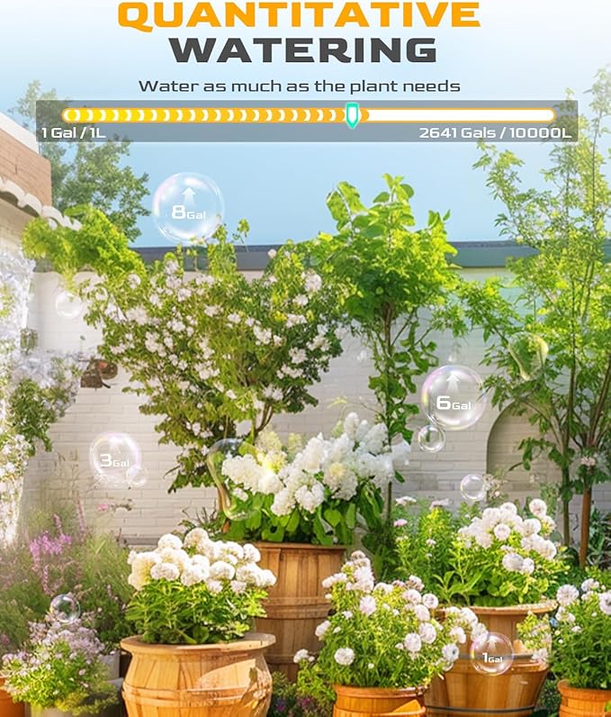 • Quantity-Based Watering:WiFi faucet timer zones have built-in flow meters, measuring water use for 10 days. Irrigate by quantity for plant needs.