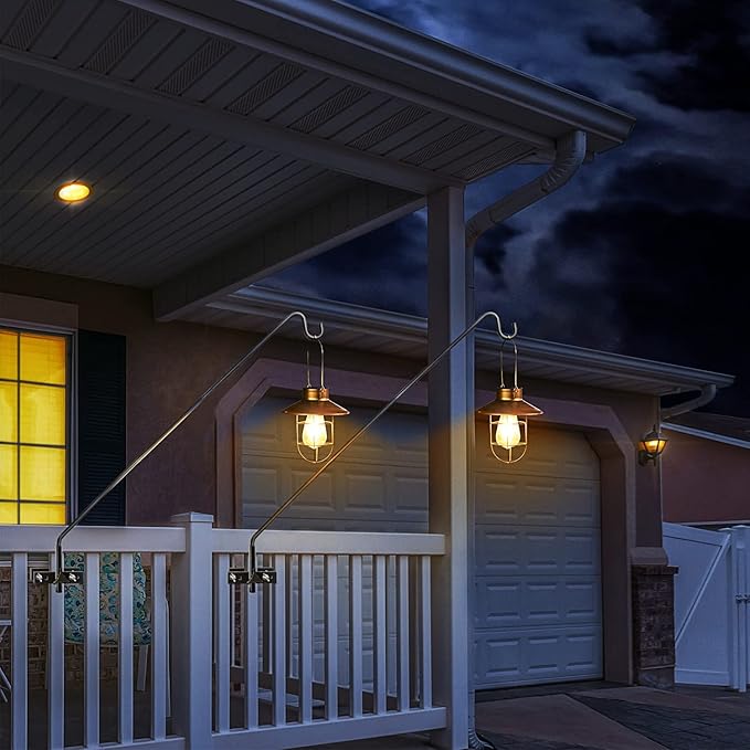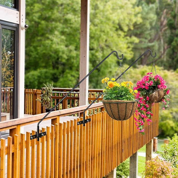 • 【Premium Quality】Our this fence deck hook is made of heavy duty steel.Weather proof black powder coated. A dark finish stunningly complements anything that hangs from it, adding elegance and beauty to your outdoor living space. Solid bracket and curved rod tip helps securely hold items.